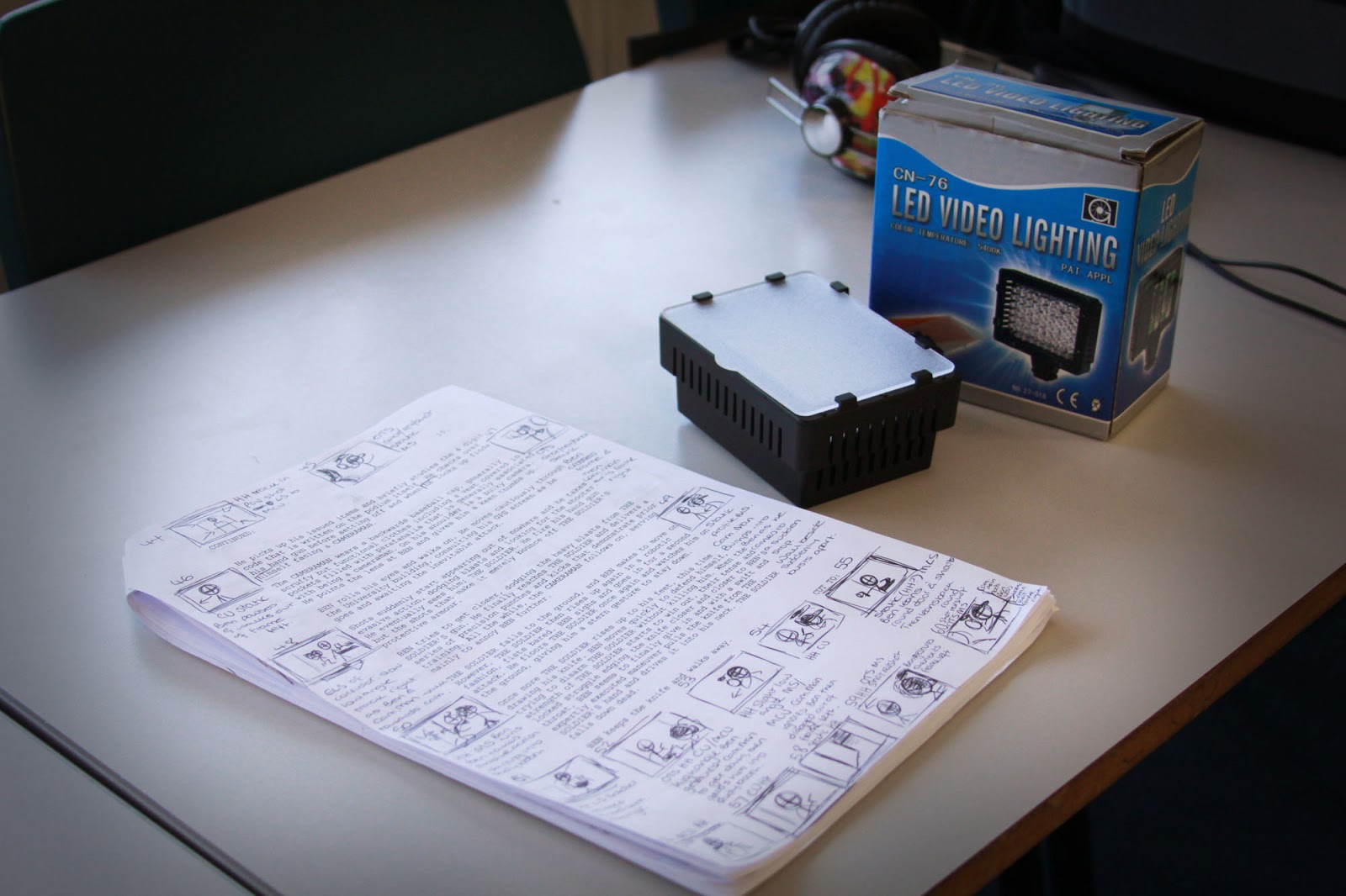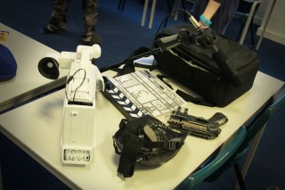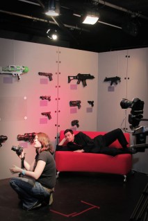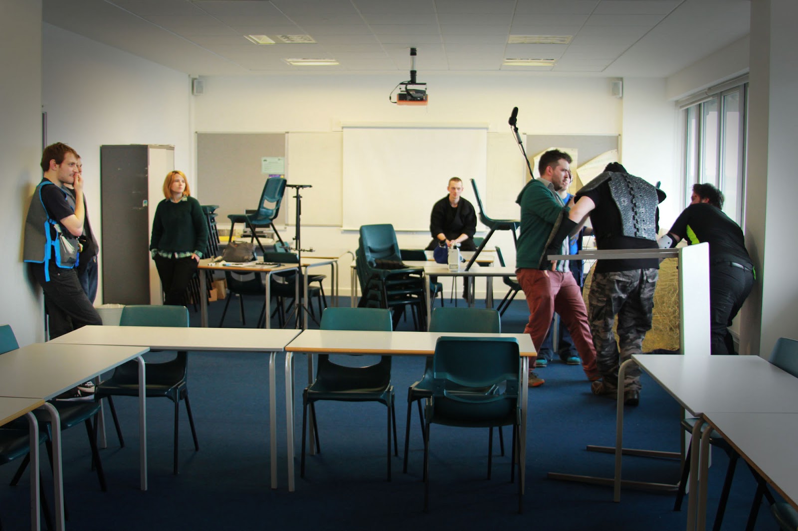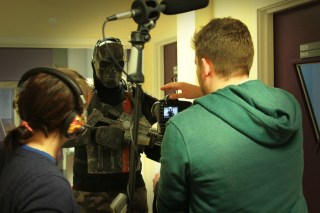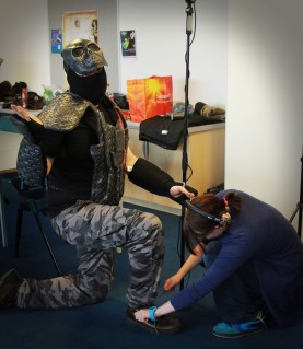 Our set shoot also made use of the Truro College facilities, by way of the fully kitted out production studio in which we assembled the Dole Warriors Studio set, with help from Sammie Stairs and our epic lead set artist Charli Bunce, who was also responsible for hand-painting some of the amazing looking prop guns affixed to the set.