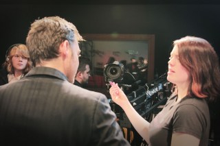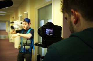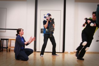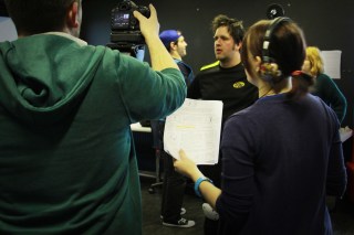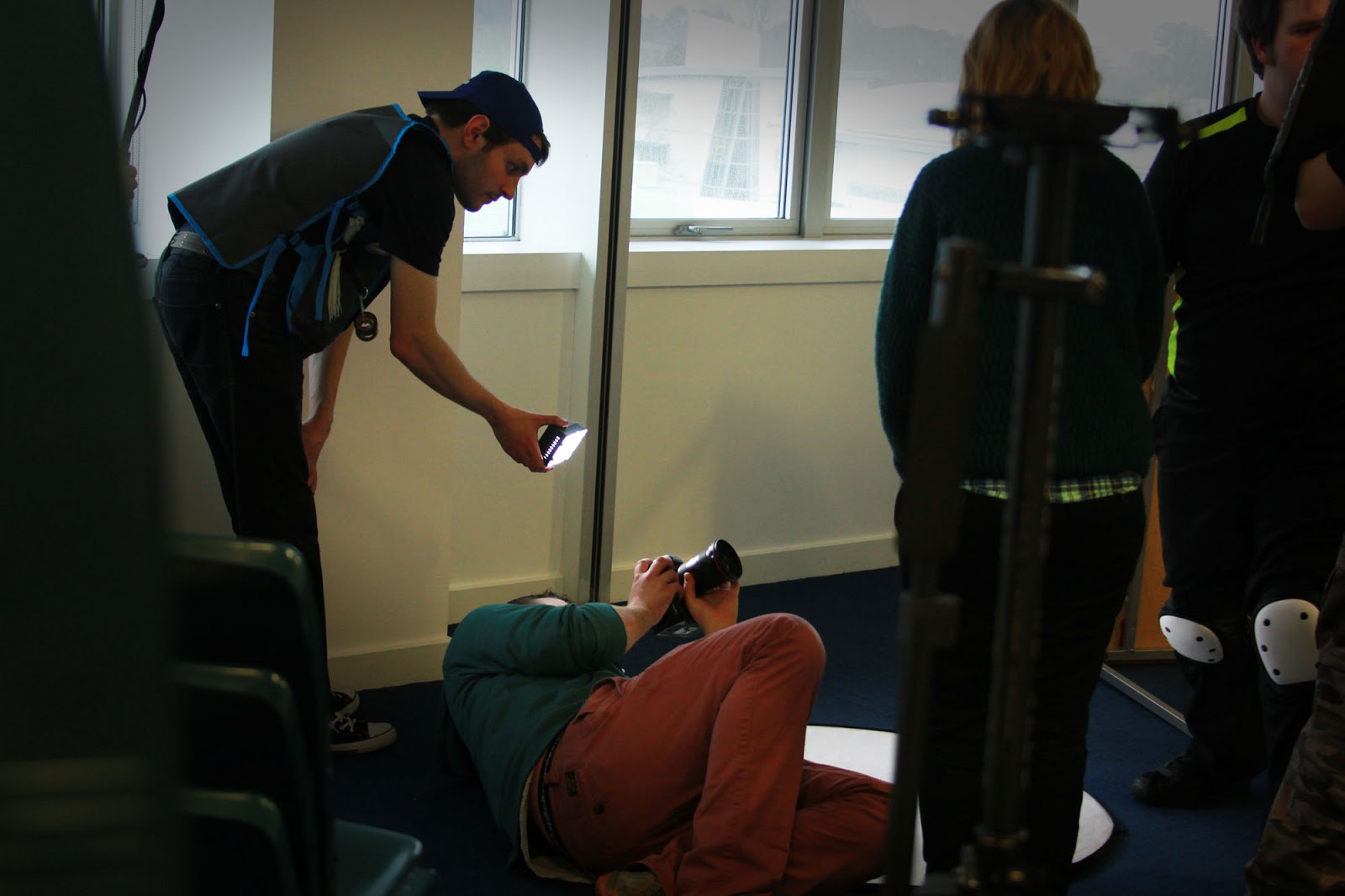 Our location shooting took place on the Truro College main campus; a stunning main building with impressive open lobbies, glass walkways and several fully glass walls 3 floors high, giving that perfect, modern setting for our film. For obvious reasons our bulk of shooting had to be done during the term holidays, which took a fair bit of logistical organizing, but meant that we had the full run of the building and had no issues with people wandering in the background of our shots – a benefit not to be sniffed at for the average independent filmmaker. We were really lucky to be able to use the location so extensively and it really paid off, delivering a sense of scale to the film that we might otherwise not have achieved.