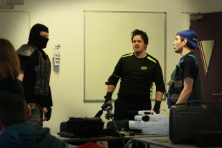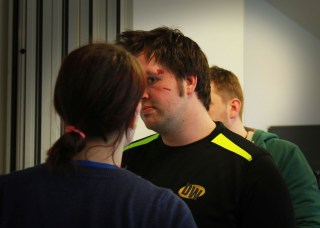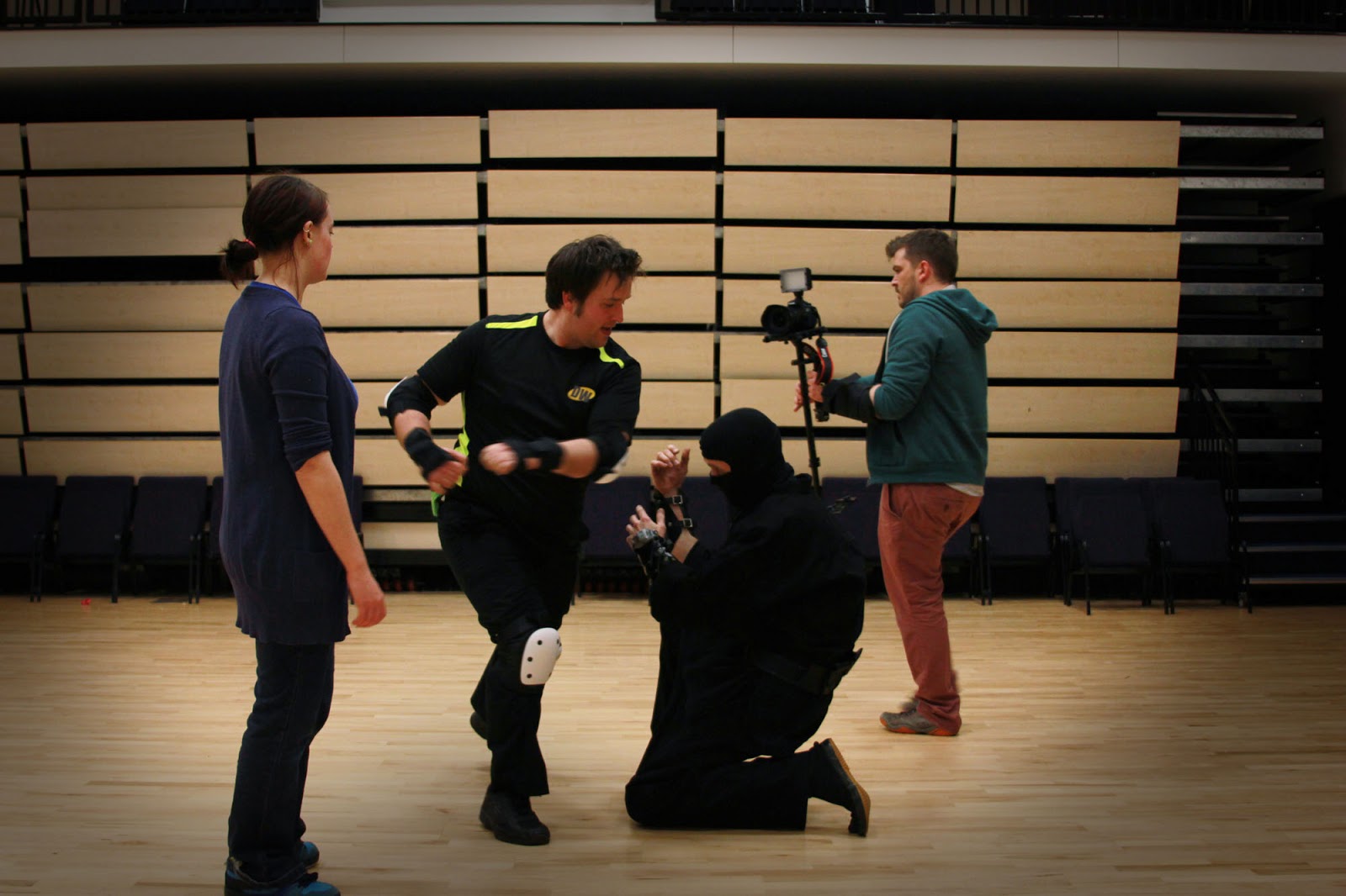 As an action short, there was a fair amount of stunt fighting that had to take place as the previous blog entry on the subject explained, and we were pleased to report that with just one exception, the fight scenes went off without a hitch or injury. The exception in question was to Danny Vincent, the fight choreographer who, as he is a trained first aider, was able to deal with the whole event himself! We are pleased to report there was no permanent injury and apart from a bump on his head and perhaps a dent in his pride, he is otherwise completely fine.
